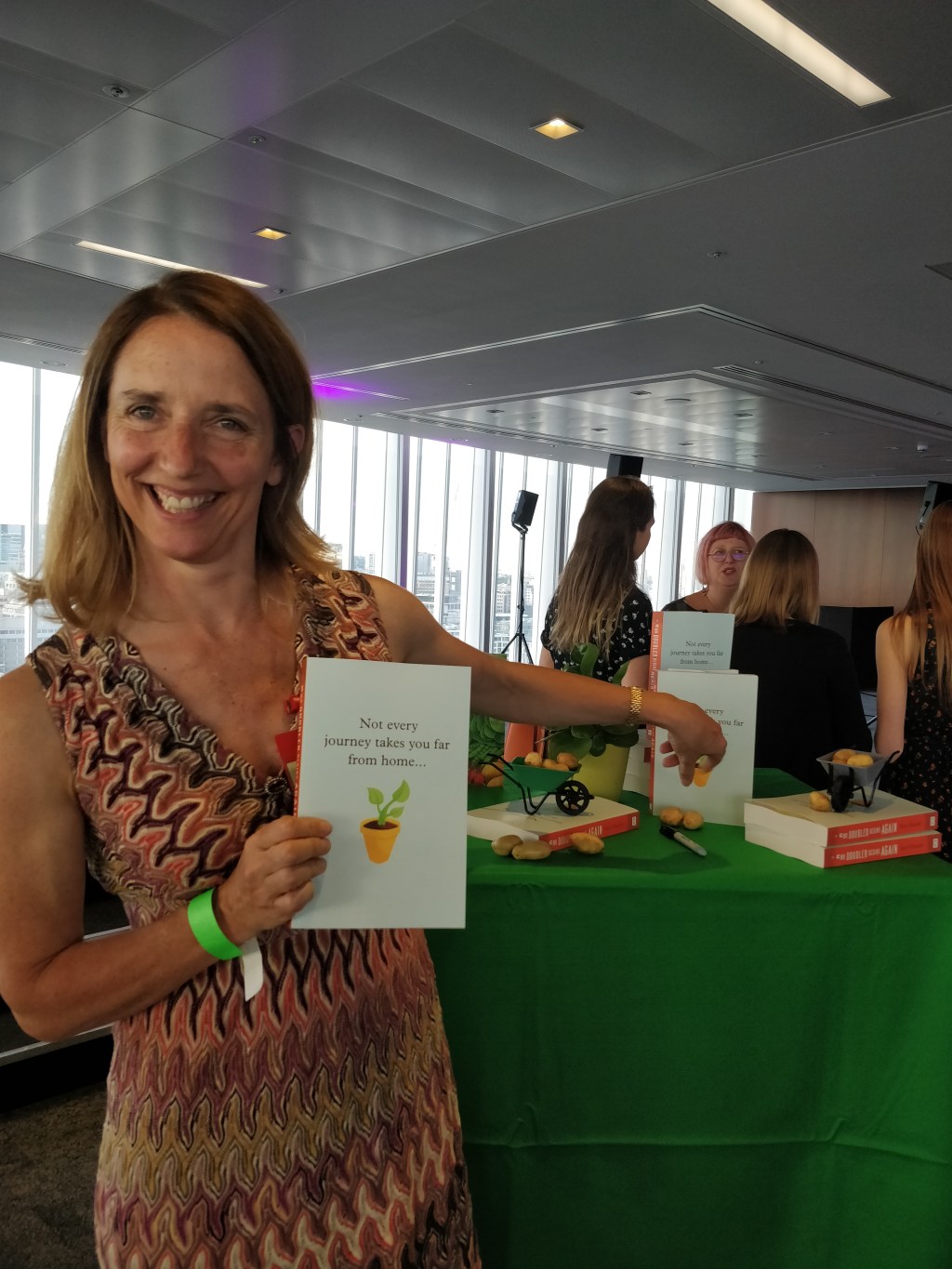 So it was here on a beautiful summers evening that I had the pleasure of meeting Seni and discovering the rather wonderful Mr Doubler. I was delighted to bring home an early proof copy well ahead of it’s publication date in January. I am a keen gardener and I have even grown my own potatoes down on my allotment, so possibly that may have been what drew me to this particular table but I think it was also a combination of Seni’s warm smile and the beautiful display of proof copies bearing the quote ‘Not every journey takes you far from home…‘