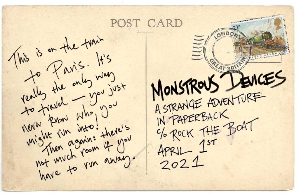 As they went, hand in hand, the bell-like chimes washed over Alex like waves in her wake. Staring at the small black head bobbing along in front of him, he … Continue reading Let me take you on a journey – with Monstrous Devices…. On the train to Paris