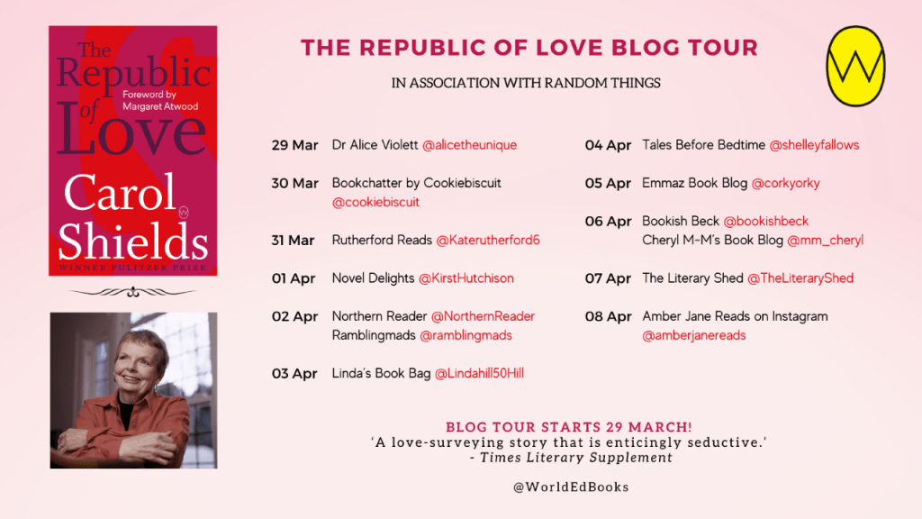 Today I am to be hosting the blog tour for The Republic of Love by Carol Shields.