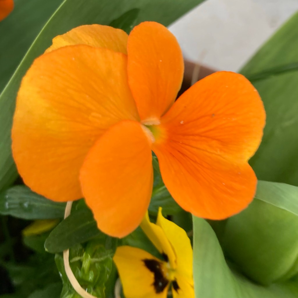 The subject of this BrightSquare was planted last autumn. This viola is bringing glorious orange joy amongst my pots of tulips at the moment. The promise of warm days to come.