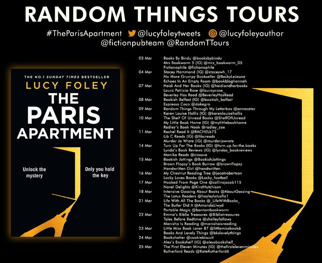 So do I recommend this book? Absolutely. It’s one of those books that made me want to re read it again to see if I could pick up on all the clues. I think I did get some along the way. I think The Paris Apartment might just be one of the biggest books of the year. I am still thinking of it days after finishing and I just adore it when a story lingers, whispering into the corners of your mind long after you’ve turned the final page.