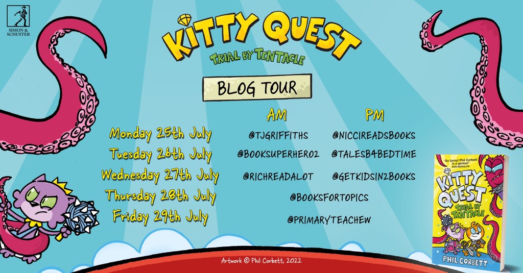 Today I am delighted to be taking part in the blog tour for the brilliant Kitty Quest: Trial By Tentacle by Phil Corbett.