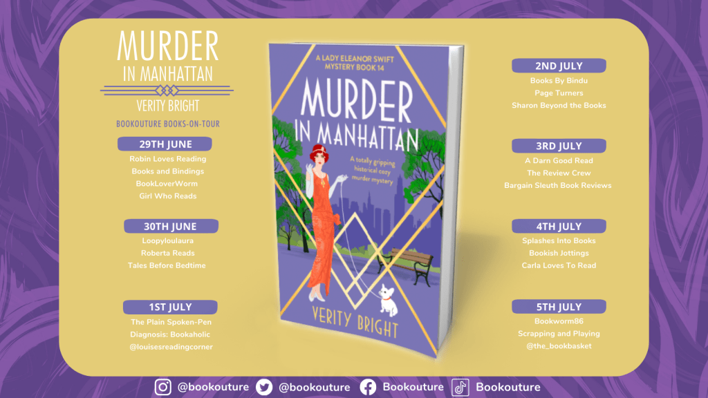 I loved this new instalment from Verity Bright.  It was lovely to be back with Ellie, Clifford and the gang and to visit New York in the early 20thcentury.  The city is a character in itself, and made the perfect backdrop for this latest novel in the series.  Another winner.  I can’t wait for them to arrive safely back at Henley Hall (and hopefully a step closer to the wedding of the year!).  This cosy crime thriller is a perfect summer read to dive into.