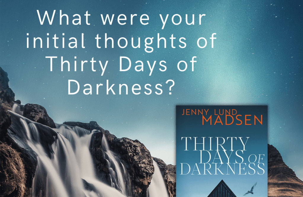 Thirty Days of Darkness by Jenny Lund Madsen The blurb A snobbish Danish literary author is challenged to write a crime novel in thirty days, travelling to a small village … Continue reading Thirty Days of Darkness – Orenda Books Bookclub Chat – part one.
