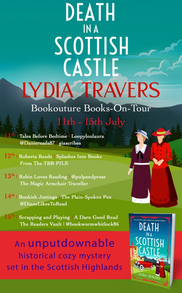 Welcome to the first day of the Books On Tour blog tour for Death in a Scottish Castle by Lydia Travers. I am thrilled to be taking part. I do love a little escapism in the form of cosy crime and this series is becoming rather lovely. The blog tour runs from today until the 15th so do be sure to check out what others are saying about Death in a Scottish Castle too!