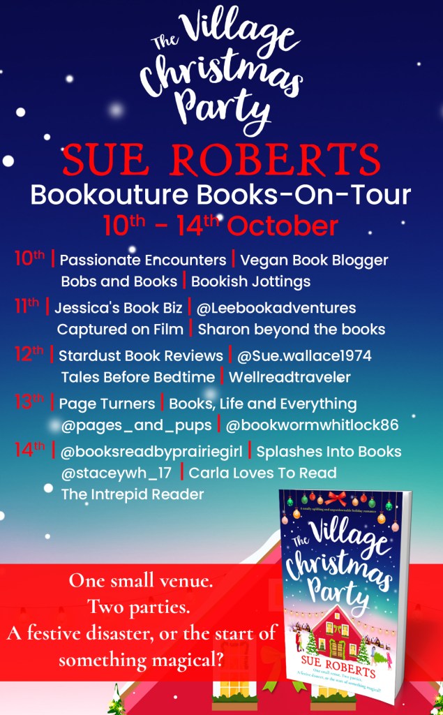 Well, we are almost mid-way through October and so I am no longer mourning the loss of summer but embracing the beginning of cosy time. Cosy places, cosy clothes and cosy reads! Today, I am delighted to be taking part in the Bookouture blog tour for The Village Christmas Party by Sue Roberts. A deliciously festive, gentle cosy read to disappear into. I can almost taste the mulled wine…